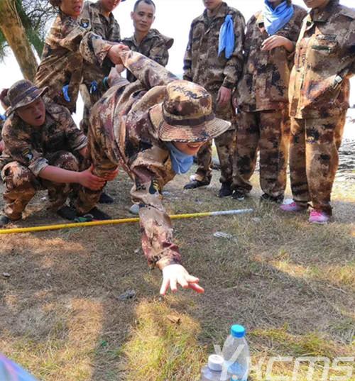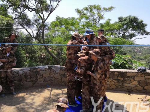 在第一個(gè)項(xiàng)目中,各支隊(duì)伍按照地圖入海島古民居,尋找資源,并完成杯水車薪任務(wù);然后進(jìn)入海巖區(qū)—無限海景,進(jìn)入內(nèi)海沙灘—遇到雷區(qū)危機(jī),完成雷區(qū)跨越;落日后—進(jìn)入防風(fēng)林—為了團(tuán)隊(duì)的安全,在隊(duì)長的帶領(lǐng)下,各團(tuán)隊(duì)利用工具搭建臨時(shí)的住所。